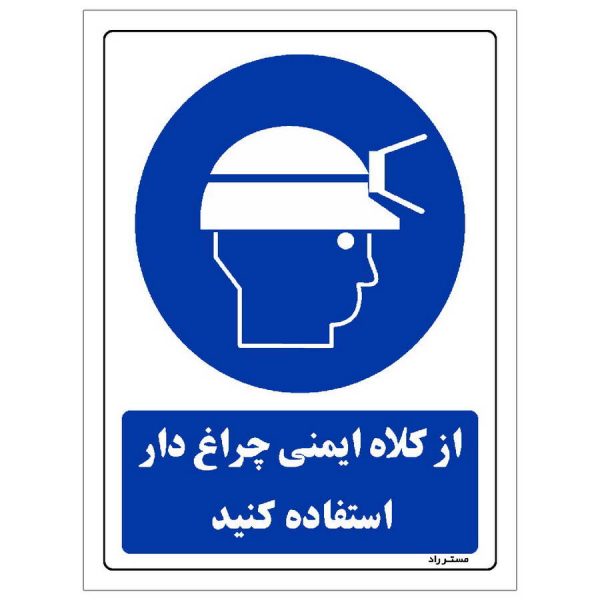 برچسب ایمنی مستر راد طرح از کلاه ایمنی چراغ دار استفاده کنید مدل HSE-OSHA-0046