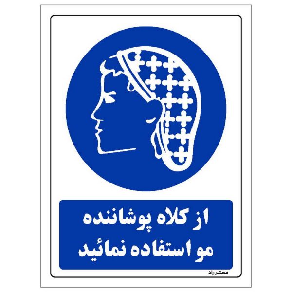 برچسب ایمنی مستر راد طرح از کلاه پوشاننده مو استفاده نمایید مدل HSE-OSHA-0234