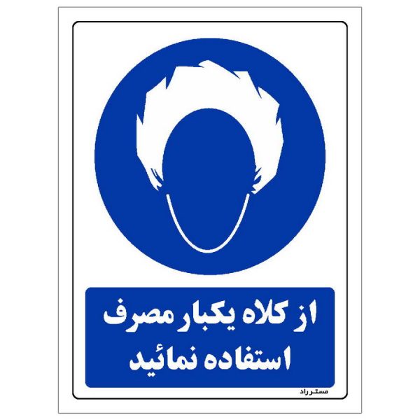 برچسب ایمنی مستر راد طرح از کلاه یکبار مصرف استفاده نمائید مدل HSE-OSHA-0238