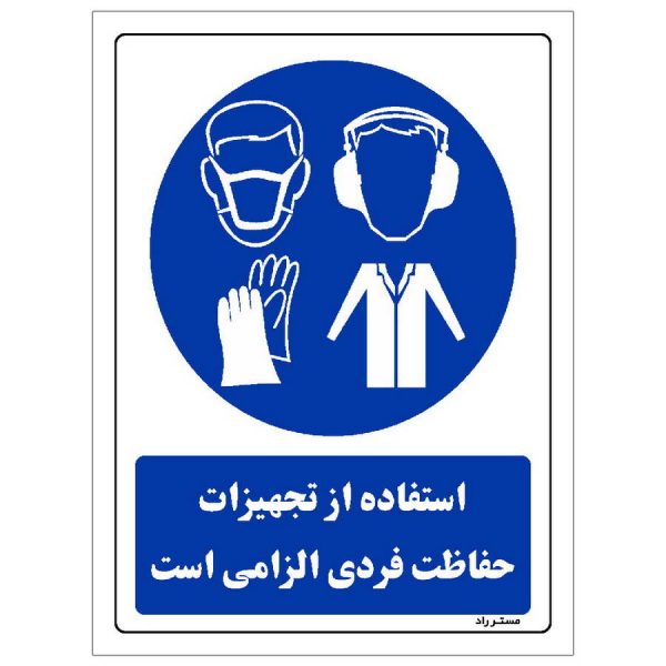 برچسب ایمنی مستر راد طرح استفاده از تجهیزات حفاظت فردی الزامیاست مدل HSE-OSHA-0062