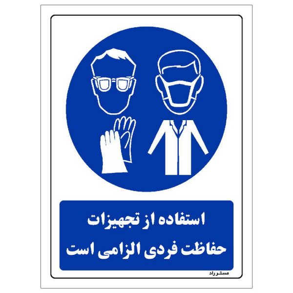 برچسب ایمنی مستر راد طرح استفاده از تجهیزات حفاظت فردی الزامی است مدل HSE-OSHA-0068