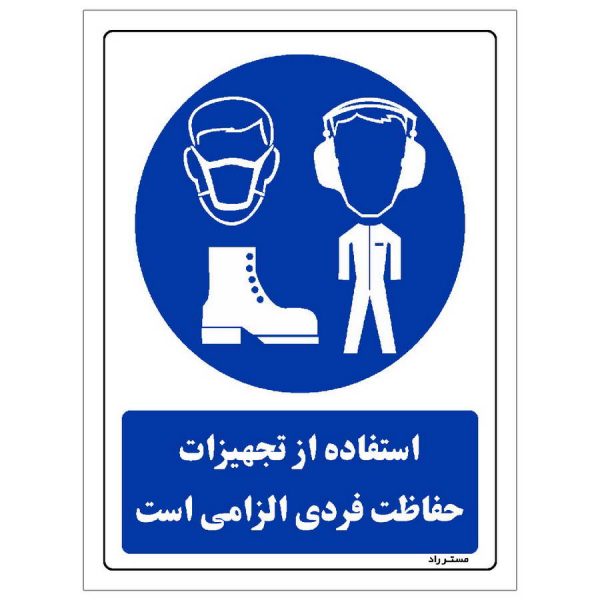 برچسب ایمنی مستر راد طرح استفاده از تجهیزات حفاظت فردی الزامی است مدل HSE-OSHA-0073