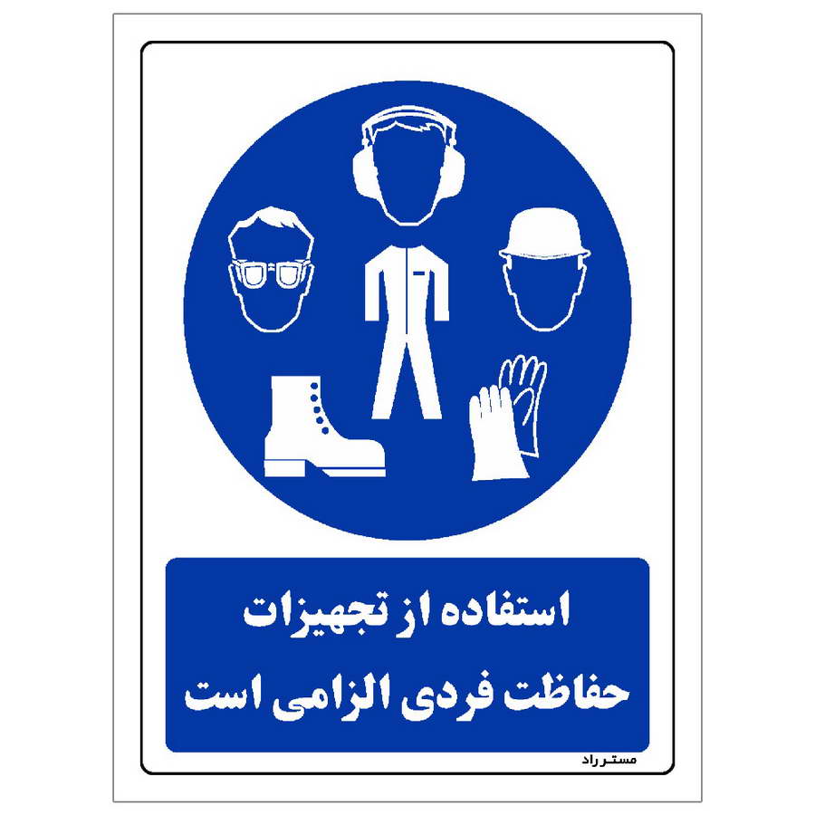 برچسب ایمنی مستر راد طرح استفاده از تجهیزات حفاظت فردی الزامی‌است مدل HSE-OSHA-0054