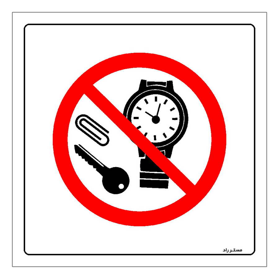 برچسب ایمنی مستر راد طرح با ساعت و وسایل فلزی وارد نشوید مدل HSE-OSHA-328