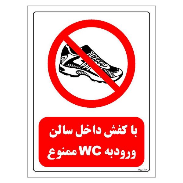 برچسب ایمنی مستر راد طرح با کفش داخل سالن ورود به WC ممنوع مدل HSE-OSHA-0146