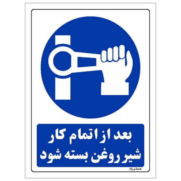 برچسب ایمنی مستر راد طرح بعد از اتمام کار شیر روغن بسته شود مدل HSE-OSHA-0175