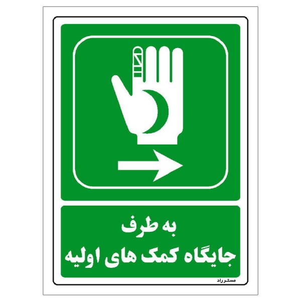 برچسب ایمنی مستر راد طرح به طرف جایگاه کمکهای اولیه مدل HSE-OSHA-0016