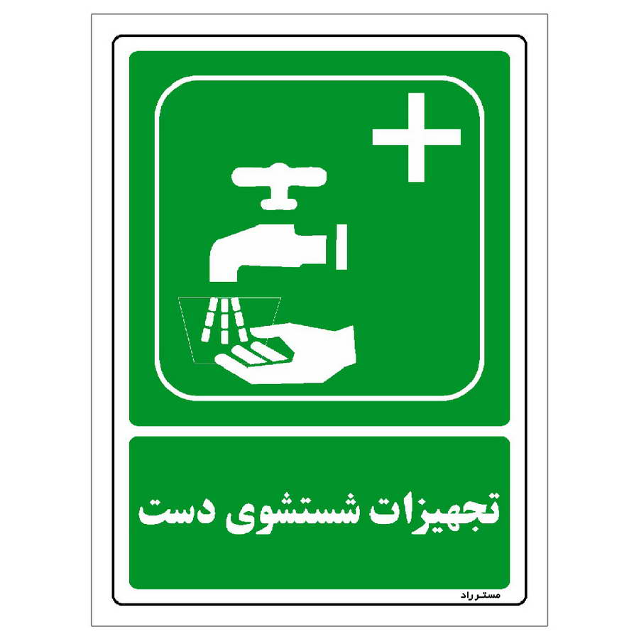 برچسب ایمنی مستر راد طرح تجهیزات شستشوی دست مدل HSE-OSHA-114