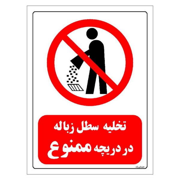 برچسب ایمنی مستر راد طرح تخلیه سطل زباله در دریچه ممنوع مدل HSE-OSHA-0024