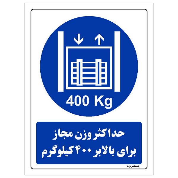 برچسب ایمنی مستر راد طرح حداکثر وزن مجاز برای بالابر 400 کیلوگرم مدل HSE-OSHA-0116