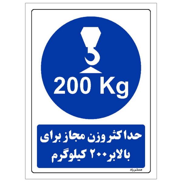 برچسب ایمنی مستر راد طرح حداکثر وزن مجاز برای بالابر 200 کیلوگرم مدل HSE-OSHA-0361