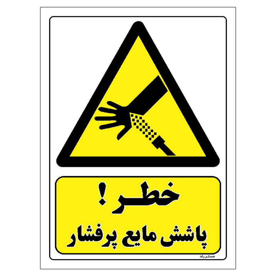 برچسب ایمنی مستر راد طرح خطر پاشش مایع پرفشار مدل HSE-OSHA-423