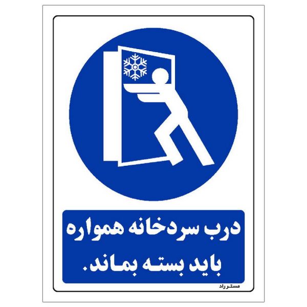 برچسب ایمنی مستر راد طرح درب سردخانه همواره باید بسته بماند مدل HSE-OSHA-0164