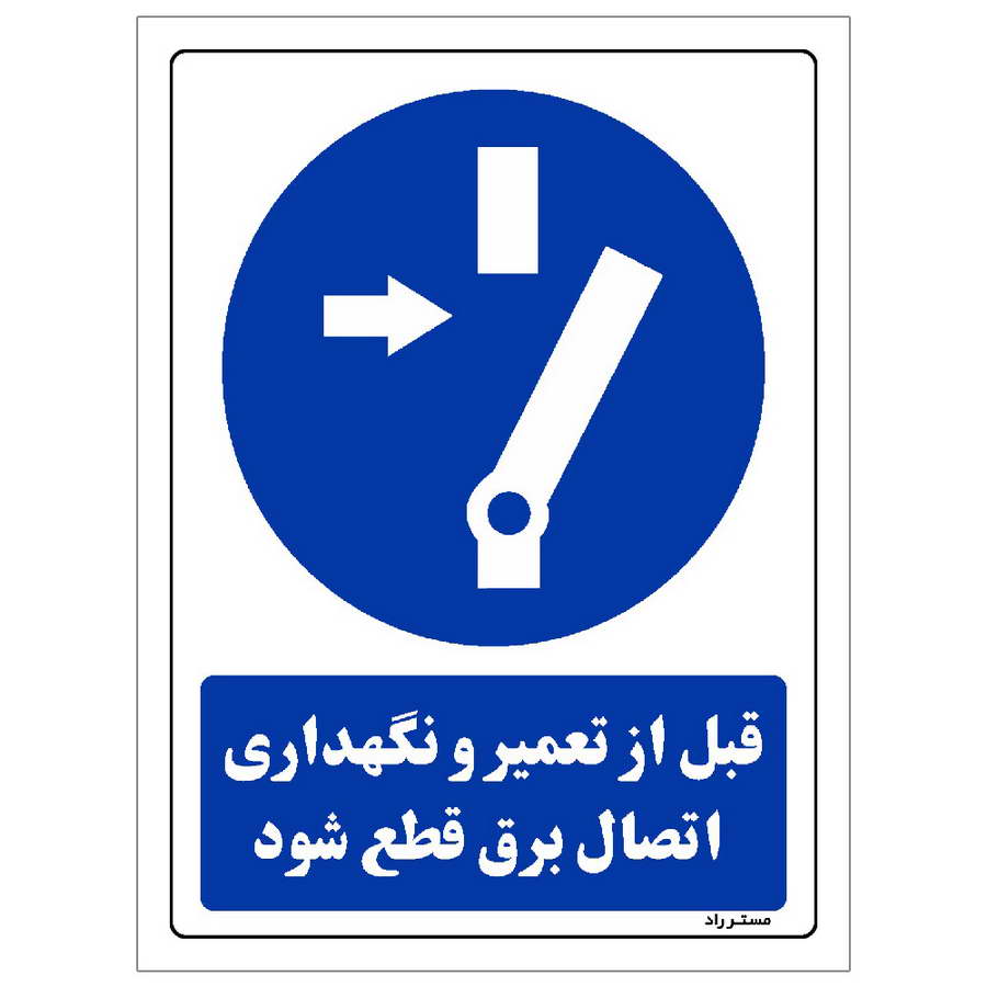 برچسب ایمنی مستر راد طرح قبل از تعمیر و نگهداری اتصال برق قطع شود مدل HSE-OSHA-0019