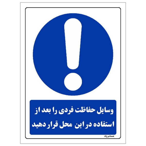 برچسب ایمنی مستر راد طرح وسایل حفاظت فردی را بعد از استفاده در این محل قرار دهید مدل HSE-OSHA-0212