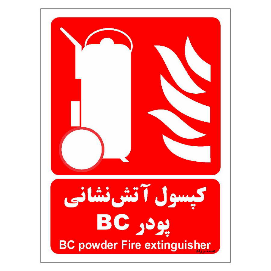 برچسب ایمنی مستر راد طرح کپسول آتش نشانی پودر BC مدل HSE-OSHA-026