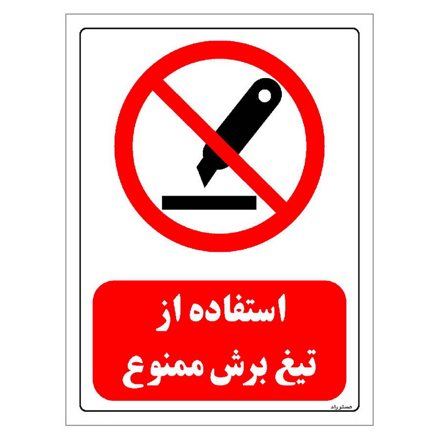 برچسب و تابلو ایمنی مستر راد طرح استفاده از تیغ برش ممنوع مدل HSE-OSHA-0451