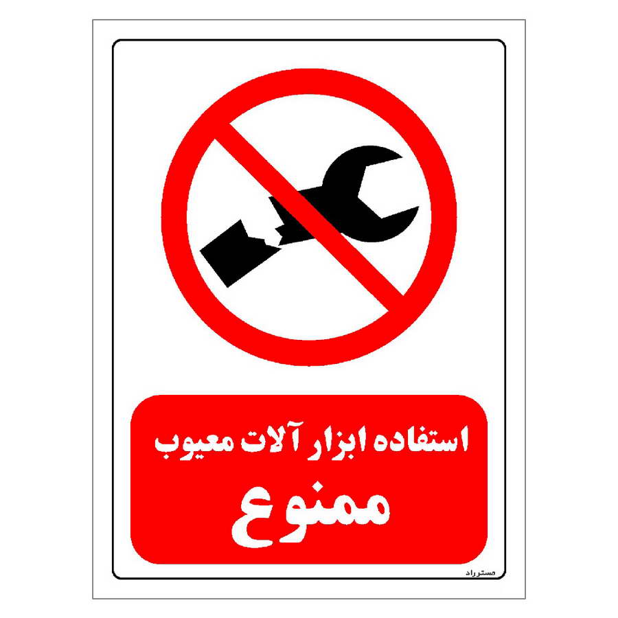 برچسب و تابلو ایمنی مستر راد طرح استفاده ابزار آلات معیوب ممنوع مدل HSE-OSHA-0364