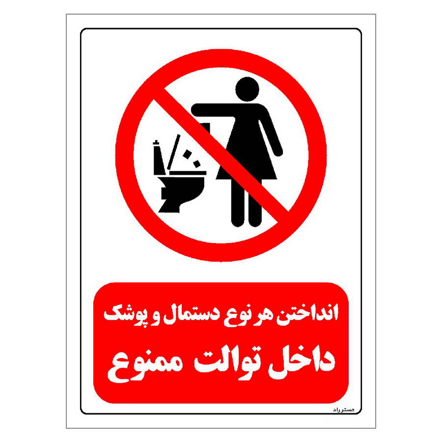 برچسب و تابلو ایمنی مستر راد طرح انداختن هر نوع دستمال و پوشک داخل توالت ممنوع مدل HSEOSHA-0326