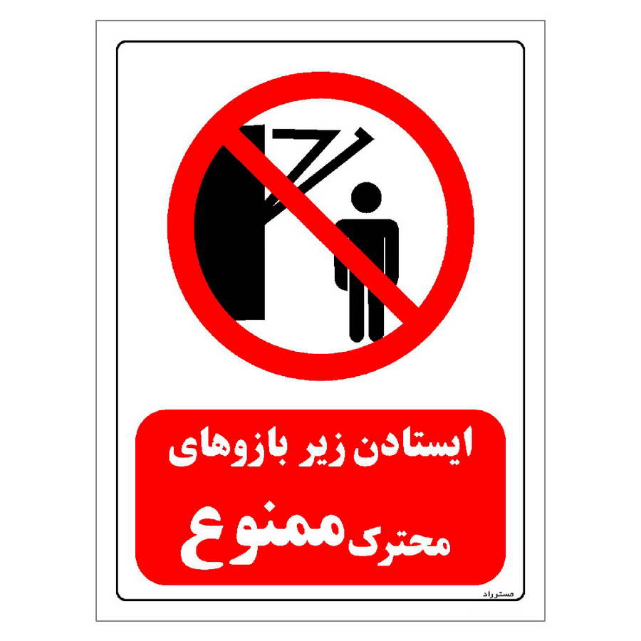 برچسب و تابلو ایمنی مستر راد طرح ایستادن زیر بازوهای متحرک ممنوع مدل HSE-OSHA-0261