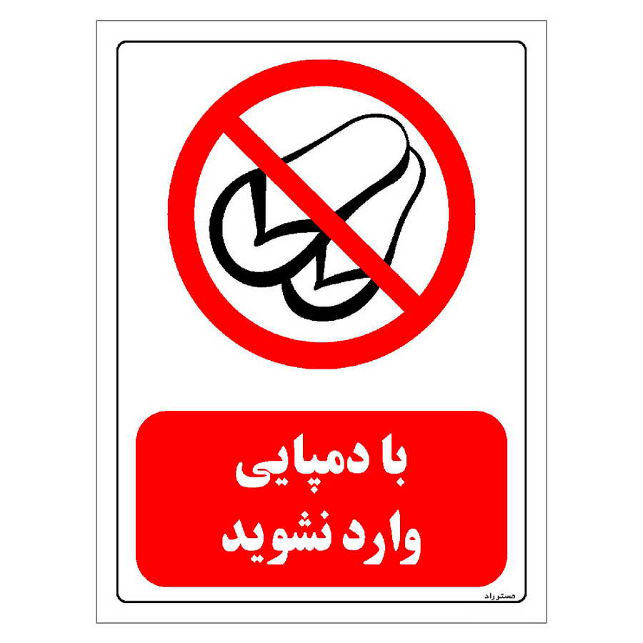 برچسب و تابلو ایمنی مستر راد طرح با دمپایی وارد نشوید مدل HSE-OSHA-0467