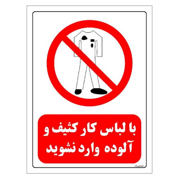 برچسب و تابلو ایمنی مستر راد طرح با لباس کار کثیف و آلوده وارد نشوید مدل HSE-OSHA-0245