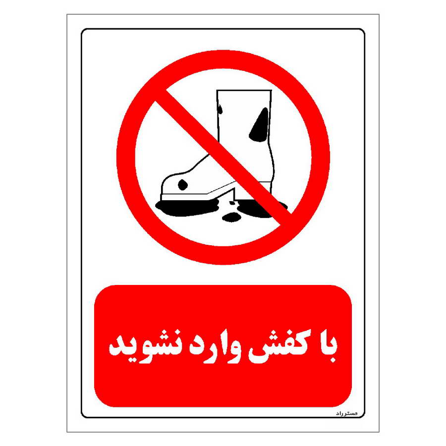برچسب و تابلو ایمنی مستر راد طرح با کفش وارد نشوید مدل HSE-OSHA-0250