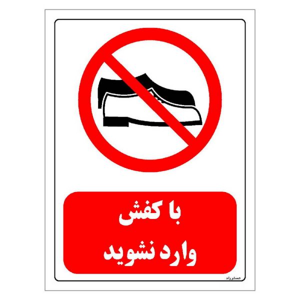 برچسب و تابلو ایمنی مستر راد طرح با کفش وارد نشوید مدل HSE-OSHA-0486