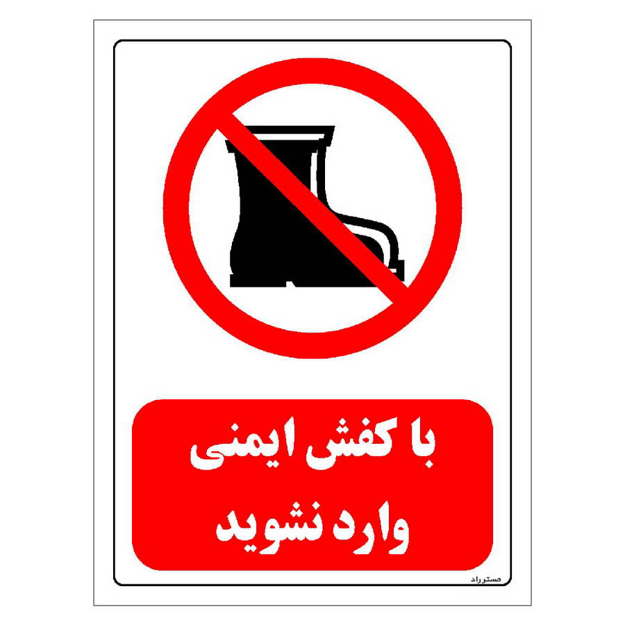 برچسب و تابلو ایمنی مستر راد طرح با کفش ایمنی وارد نشوید مدل HSE-OSHA-0488