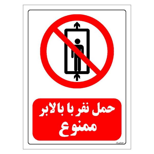 برچسب و تابلو ایمنی مستر راد طرح حمل نفر با بالابر ممنوع مدل HSE-OSHA-0498