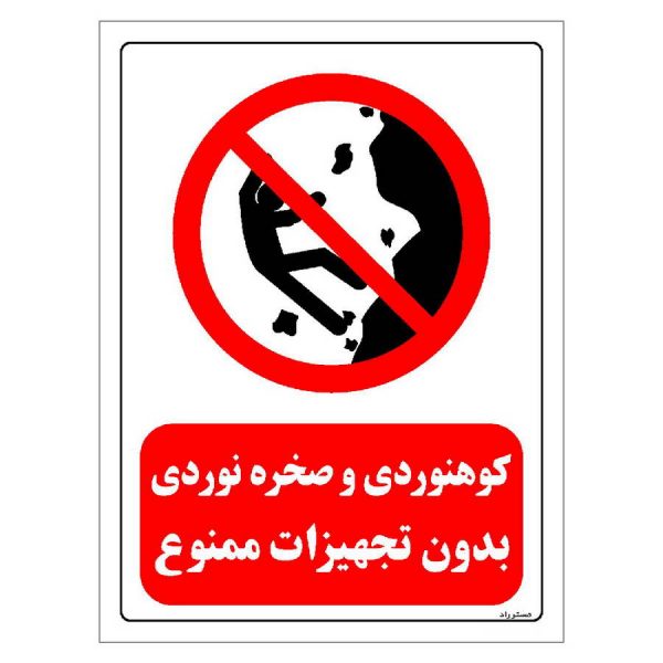 برچسب و تابلو ایمنی مستر راد طرح کوهنوردی و صخره نوردی بدون تجهیزات ممنوع مدل HSE-OSHA-0293
