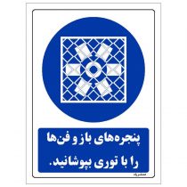 برچسب ایمنی مستر راد طرح پنجره های باز و فن ها را با توری بپوشانید مدل HSE-OSHA-0099