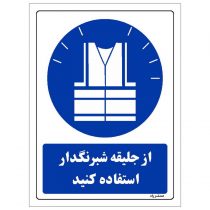 برچسب ایمنی مستر راد طرح از جلیقه شبرنگدار استفاده کنید مدل HSE-OSHA-030