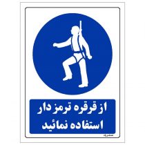 برچسب ایمنی مستر راد طرح از قرقره ترمزدار استفاده نمائید مدل HSE-OSHA-0202