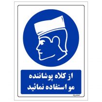 برچسب ایمنی مستر راد طرح از کلاه پوشاننده مو استفاده نمائید مدل HSE-OSHA-0157