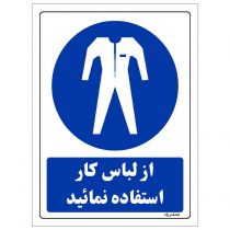 برچسب ایمنی مستر راد طرح از لباس کار استفاده نمائید مدل HSE-OSHA-213