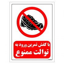 برچسب ایمنی مستر راد طرح با کفش داخل سالن ورود به WC ممنوع مدل HSE-OSHA-0145