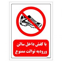 برچسب ایمنی مستر راد طرح با کفش داخل سالن ورود به توالت ممنوع مدل HSE-OSHA-0156